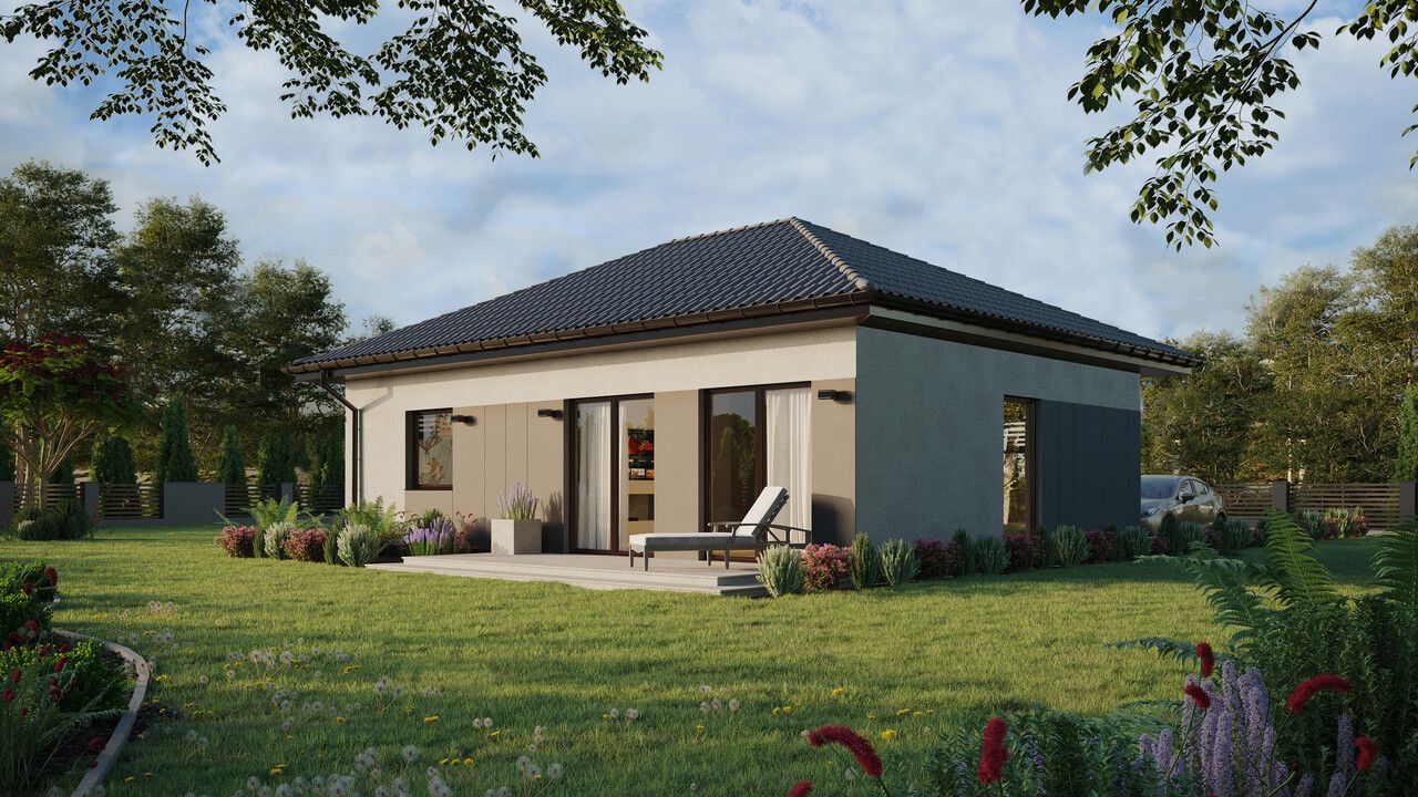 Das Haus ERDOL 1 XL ist eine erweiterte Version des Hauses ERDOL 1. Das Haus mit einer Fläche von 74 m² (116 m² in der Version mit nutzbarem Dachgeschoss) bietet seinen Bewohnern einen komfortablen Raum, in dem alles, was sie brauchen, ist. Seine geringe Größe macht es einfach und kostengünstig in der Instandhaltung. Für den Bau wird KVH-Holz verwendet, das die Grundlage der gesamten Struktur bildet. Dank energiesparender Lösungen Planung verhindert es Energieverluste und ist umweltfreundlich.