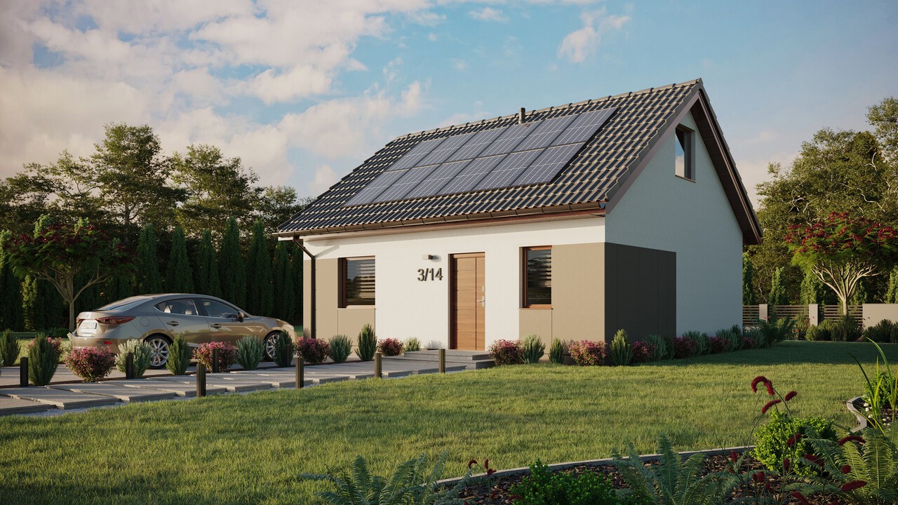 Das Haus ERDOL 1 mit einer Fläche von 59 m² (90 m² in der Version mit nutzbarem Dachgeschoss) bietet seinen Bewohnern einen komfortablen Raum, in dem alles, was sie brauchen, vorhanden ist. Seine geringe Größe macht es einfach und kostengünstig in der Instandhaltung, was uns in Verbindung mit den modernen und ökologischen Lösungen, die bei seiner Konstruktion verwendet wurden, die Klarheit gibt, dass dieses Haus im Einklang mit der Natur.