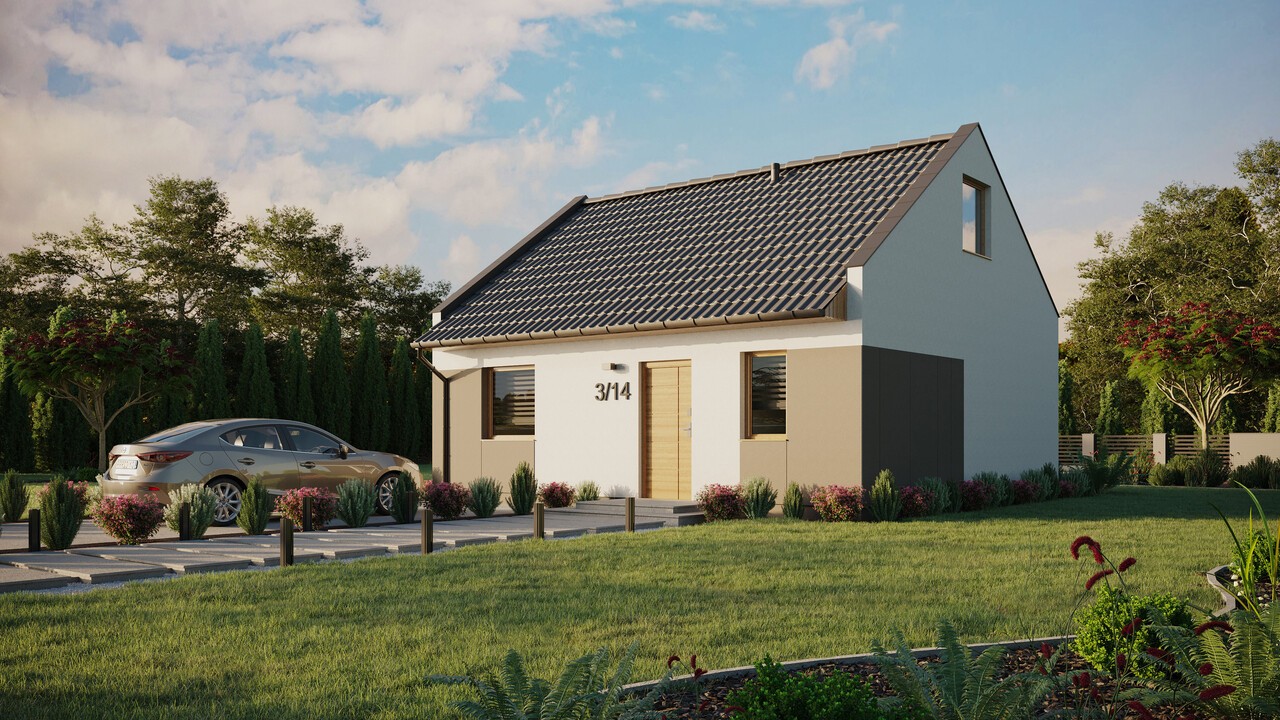 Das Haus ERDOL 1 mit einer Fläche von 59 m² (90 m² in der Version mit nutzbarem Dachgeschoss) bietet seinen Bewohnern einen komfortablen Raum, in dem alles, was sie brauchen, vorhanden ist. Seine geringe Größe macht es einfach und kostengünstig in der Instandhaltung, was uns in Verbindung mit den modernen und ökologischen Lösungen, die bei seiner Konstruktion verwendet wurden, die Klarheit gibt, dass dieses Haus im Einklang mit der Natur.