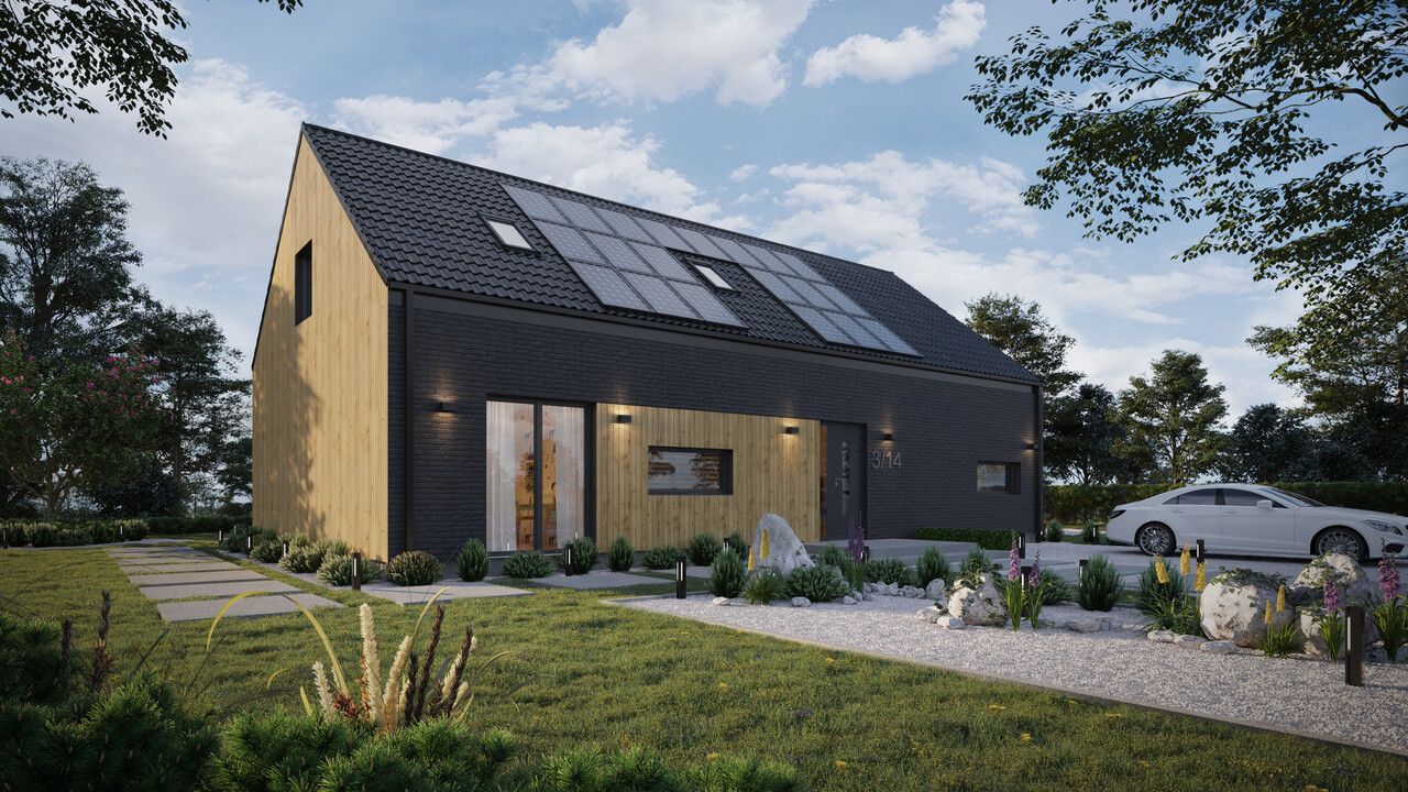 ERDOL 124 mit einer Fläche von 142 m² (222 m² in der Version mit nutzbarem Dachgeschoss) ist ein perfektes Projekt für Menschen, die ein Haus in einem einfachens und modernes Haus suchen. Seine minimalistische Form spiegelt perfekt die aktuellen Bautrends wider. Darüber hinaus verfügt das Haus über alle Vorteile unserer anderen Projekte: Es ist kostengünstig im Unterhalt und äußerst komfortabel in der Nutzung und bietet seinen Bewohnern einen angenehmen Lebensraum. Die beim Bau verwendeten ökologischen Materialien und neusten Technologien ermöglichen große Energieeinsparungen, so dass das Haus im Einklang mit der Natur harmoniert.