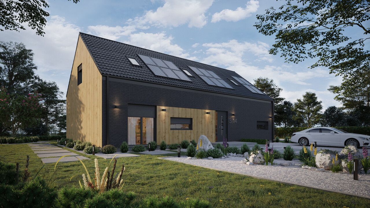 ERDOL 124 mit einer Fläche von 142 m² (222 m² in der Version mit nutzbarem Dachgeschoss) ist ein perfektes Projekt für Menschen, die ein Haus in einem einfachens und modernes Haus suchen. Seine minimalistische Form spiegelt perfekt die aktuellen Bautrends wider. Darüber hinaus verfügt das Haus über alle Vorteile unserer anderen Projekte: Es ist kostengünstig im Unterhalt und äußerst komfortabel in der Nutzung und bietet seinen Bewohnern einen angenehmen Lebensraum. Die beim Bau verwendeten ökologischen Materialien und neusten Technologien ermöglichen große Energieeinsparungen, so dass das Haus im Einklang mit der Natur harmoniert.
