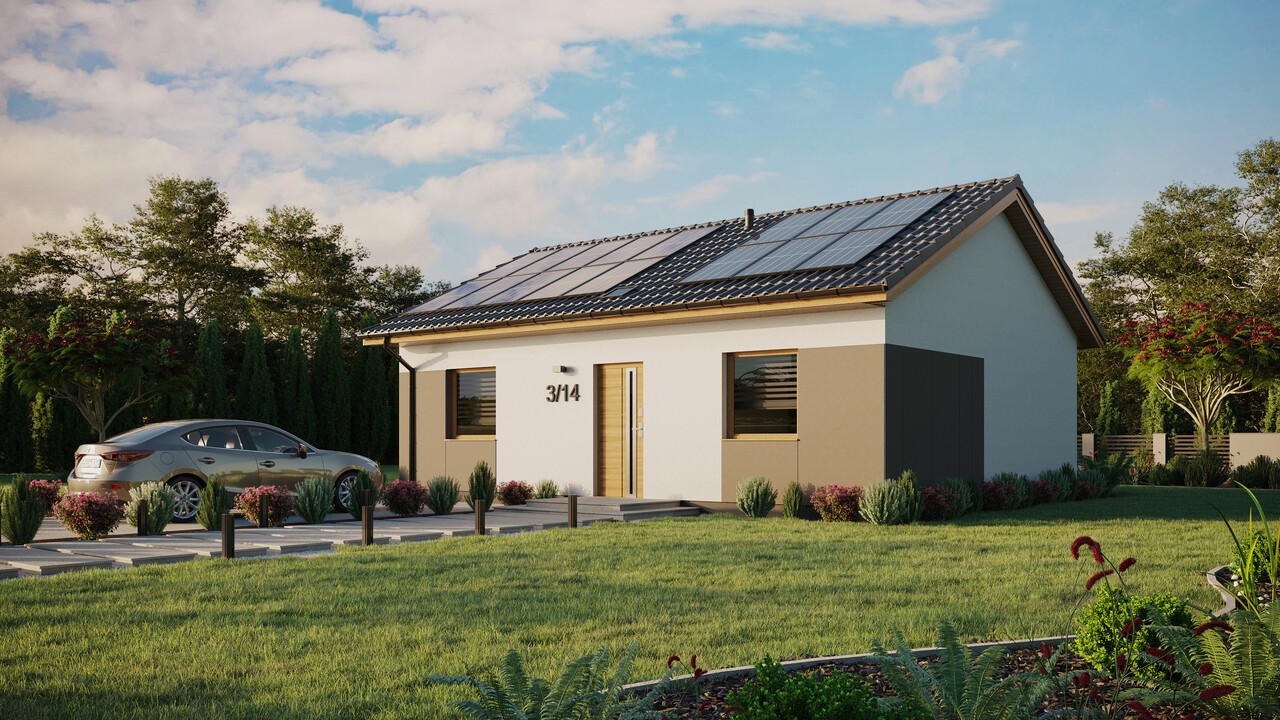 Das Haus ERDOL 2 mit einer Fläche von 68 m² (107 m² in der Version mit nutzbarem Dachgeschoss) wurde entworfen, um auf kompaktem Raum Komfort und alles zu bieten, was im täglichen Leben am wichtigsten ist. Modernste Technologien und ökologische Lösungen machen es zu einem energieeffizienten Haus, das im Einklang mit der Natur funktioniert. Für die Konstruktion wird KVH-Holz verwendet, das die Grundlage der gesamten Struktur bildet. Entsprechend ausgewählte Dämmstoffe sorgen dafür, dass das Haus vor Wärmeverlusten geschützt ist.