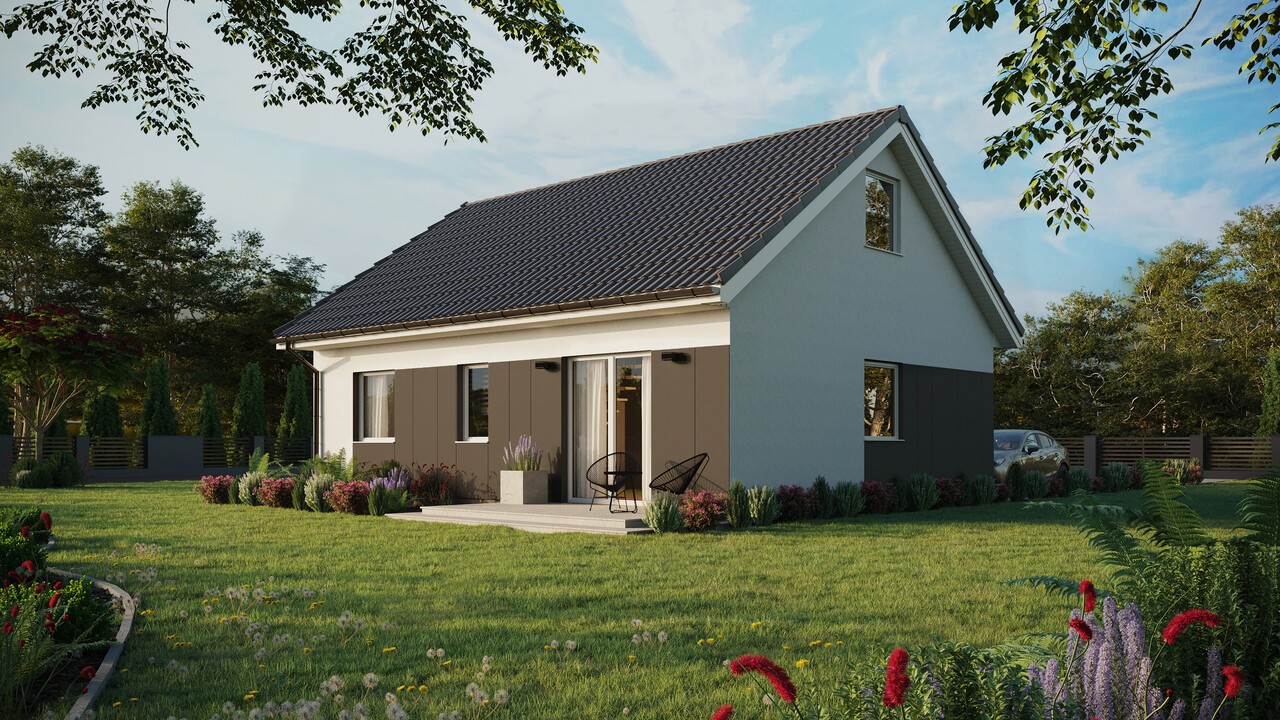 Das Haus ERDOL 2 mit einer Fläche von 68 m² (107 m² in der Version mit nutzbarem Dachgeschoss) wurde entworfen, um auf kompaktem Raum Komfort und alles zu bieten, was im täglichen Leben am wichtigsten ist. Modernste Technologien und ökologische Lösungen machen es zu einem energieeffizienten Haus, das im Einklang mit der Natur funktioniert. Für die Konstruktion wird KVH-Holz verwendet, das die Grundlage der gesamten Struktur bildet. Entsprechend ausgewählte Dämmstoffe sorgen dafür, dass das Haus vor Wärmeverlusten geschützt ist.